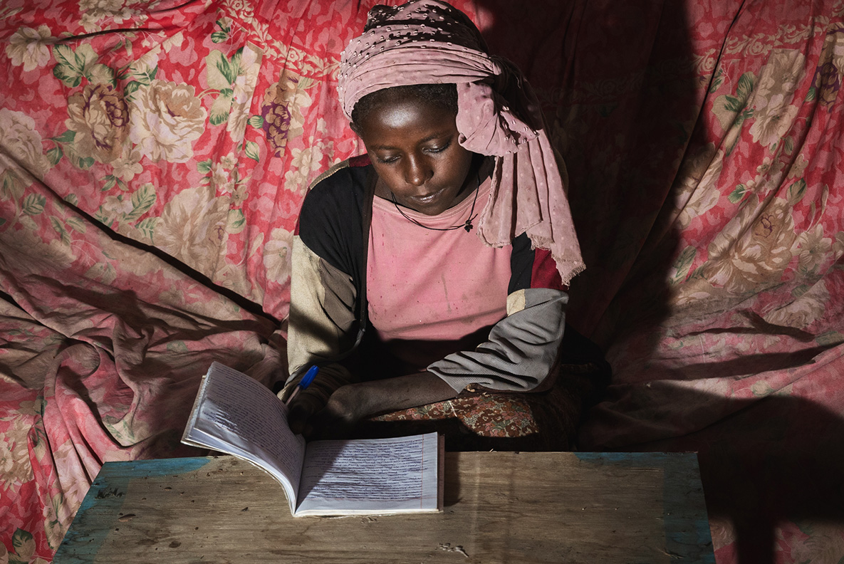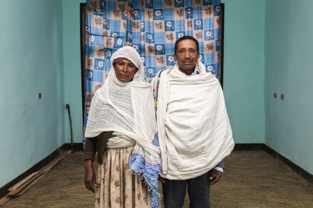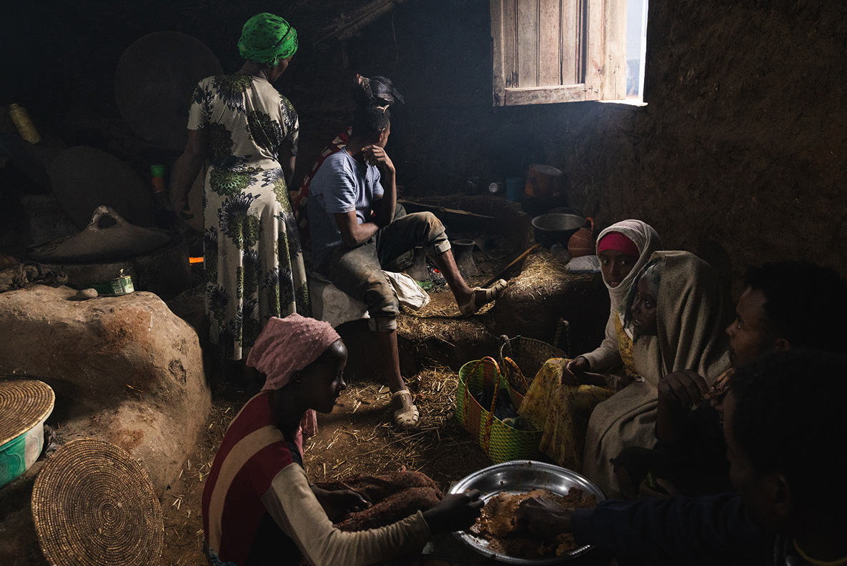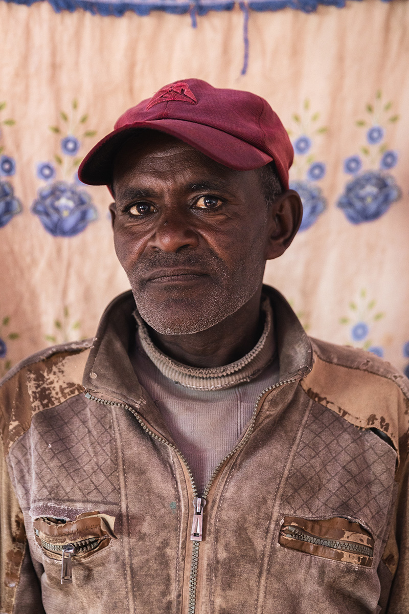 Gebireselassie Kidanemariam, 56 anni, è il capofamiglia di un nucleo familiare di cinque persone e vive nel villaggio di Woynye. Un tempo la mungitura rappresentava una delle principali fonti di reddito per la sua famiglia, generando un profitto annuo stimato di 80.000 birr, ma negli ultimi due anni una malattia che colpisce il bestiame, caratterizzata da tremori, perdita di peso e un drastico calo della produzione che porta alla totale assenza di latte, ha ridotto drasticamente la produzione. Gebireselassie ritiene che la malattia sia stata introdotta attraverso il commercio di bestiame proveniente da altre regioni. Nonostante la presenza di servizi veterinari, non è stata trovata alcuna cura efficace, il che lo ha portato a vendere le mucche non appena compaiono i sintomi. I cambiamenti nei modelli di precipitazioni, con piogge che iniziano più tardi e finiscono prima, hanno avuto un impatto drastico sulle rese di grano, che sono scese da una media di 40 quintali a soli sei l’anno scorso. Le continue perdite di raccolto causate dalle scimmie lo hanno spinto a passare dalla coltivazione del grano alle piantagioni di eucalipto per il legno da costruzione e da ardere, una transizione che richiede da due a quattro anni di attesa per ottenere rendimenti stabili. Il reddito derivante dalla vendita di eucalipto è stato di circa 70.000 birr l’anno scorso. Anche le infestazioni di parassiti che colpiscono i fagioli persistono nonostante l’uso di nuovi trattamenti chimici. La famiglia dipende dall’agricoltura e dalla vendita del bestiame per il proprio reddito. La famiglia non è allacciata alla rete elettrica ma utilizza un pannello solare, attinge l’acqua da un fiume e non dispone di servizi igienici. L’ospedale più vicino dista 60 minuti a piedi e la scuola locale circa 45 minuti.